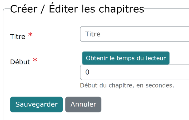 Un chapitre a un début et une fin, calculé en secondes. Deux possibilités :